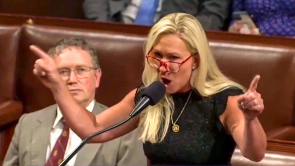 Rep. Marjorie Taylor Greene (R-GA) suggested that "forgotten" Americans should "overthrow" the government. During a Wednesday interview with a podcaster named Shipwreck, Greene said the American people "have forgotten their power." "I call them the forgotten American man and woman," she (...)